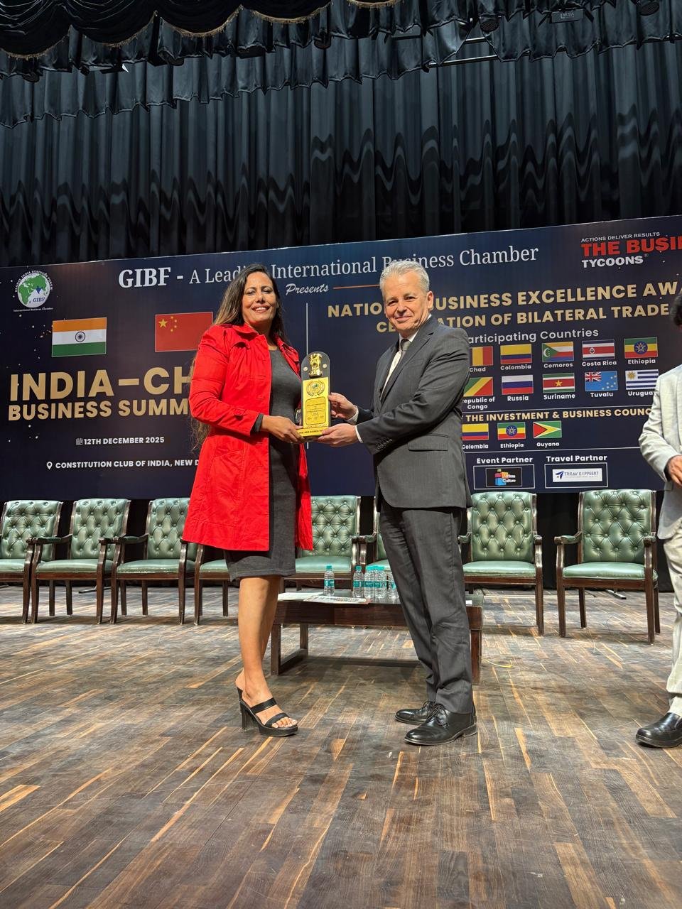 Ambassador Dr. Ashma Begum was honored with the INDIA CHINA BUSINESS AWARD (The Best Female Entrepreneurs of Northeast to the Global) by H.E PATORGISE at the Constitution Club of India on December 12, 2025. The award ceremony was part of the China-India Business Summit.