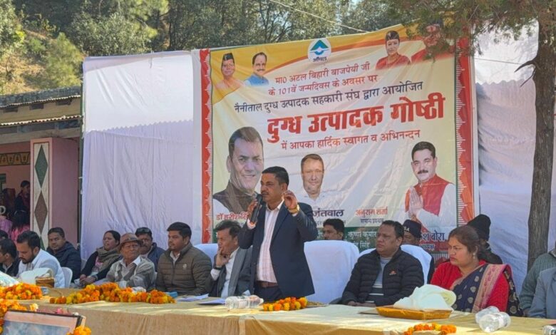 लालकुआँ। नैनीताल दुग्ध उत्पादक सहकारी संघ लिमिटेड, लालकुआँ की ओर से भीमताल में सुशासन दिवस एवं भारत रत्न पूर्व प्रधानमंत्री श्रद्धेय अटल बिहारी वाजपेयी की जन्म शताब्दी वर्ष (अटल स्मृति के अवसर पर वर्ष 2024–25 के दुग्ध संकलन एवं वितरण कार्य की वार्षिक समीक्षा बैठक के साथ-साथ बोनस एवं पुरस्कार वितरण कार्यक्रम का भव्य आयोजन किया गया।