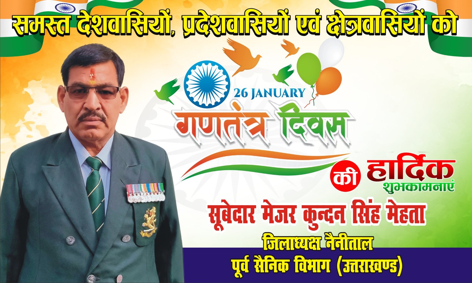 इधर सांसद प्रतिनिधि लक्ष्मण खाती ने कहा कि 26 जनवरी भारतीय इतिहास का स्वर्णिम दिन है, जो संविधान, लोकतंत्र और देश की एकता का प्रतीक है। यह पर्व हमें अपने कर्तव्यों और जिम्मेदारियों की भी याद दिलाता है।